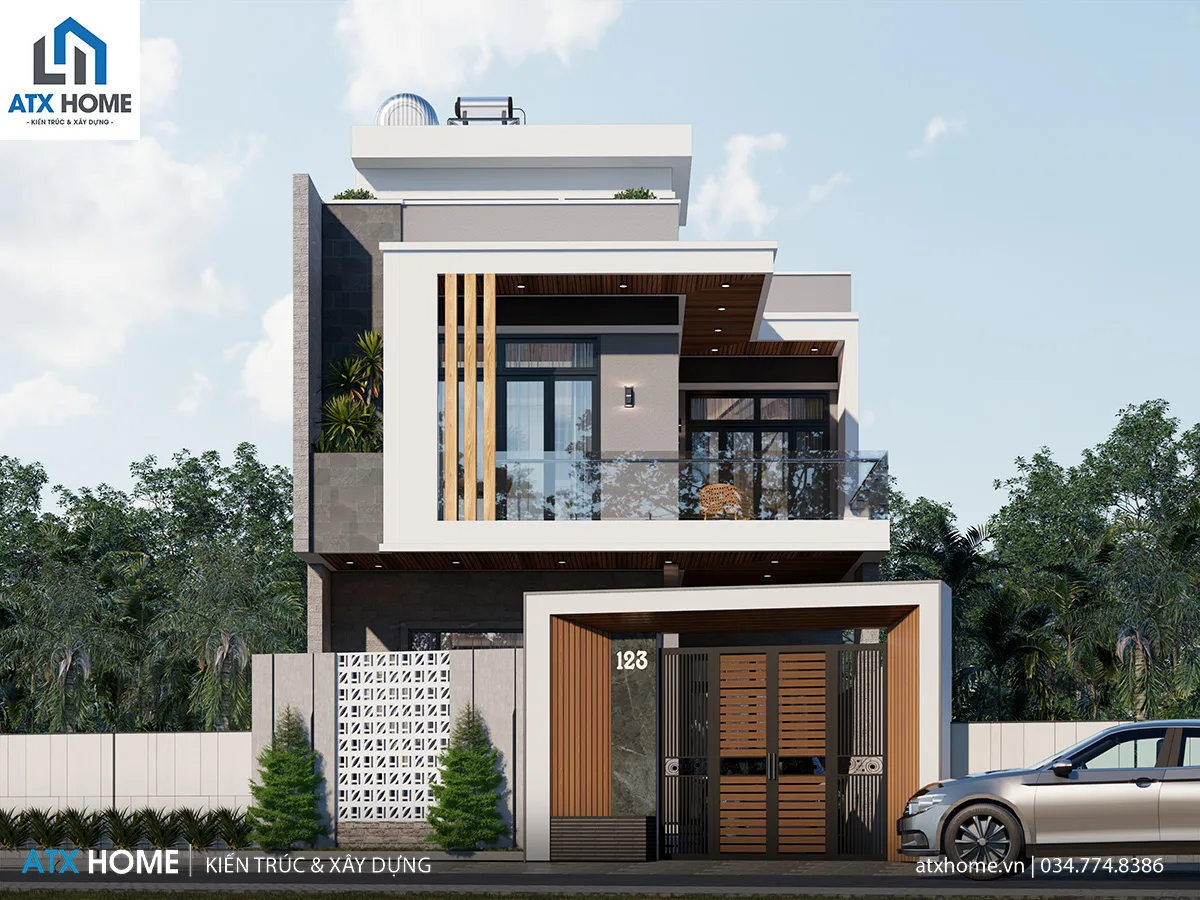 Từ góc nhìn đầu tiên, ngôi nhà của chị Trang mang đến cảm giác vững chãi nhưng vẫn tinh tế, nhờ cách xử lý khối nhà có chiều sâu và tỉ lệ hài hòa. Thay vì phô diễn những chi tiết cầu kỳ, kiến trúc sư ATX HOME tập trung vào sự cân bằng giữa thẩm mỹ và công năng thực tế – một triết lý thiết kế đang được nhiều gia chủ hiện đại ưa chuộng.
