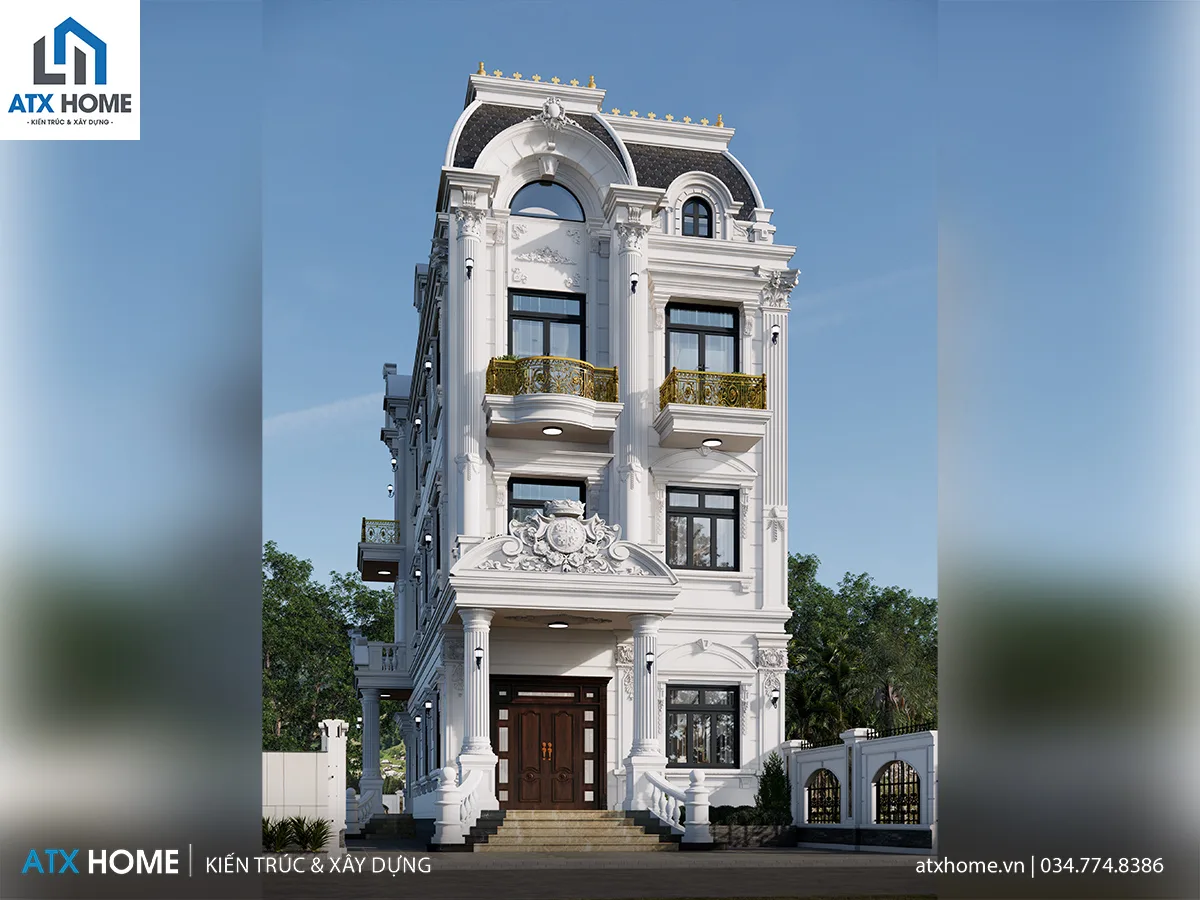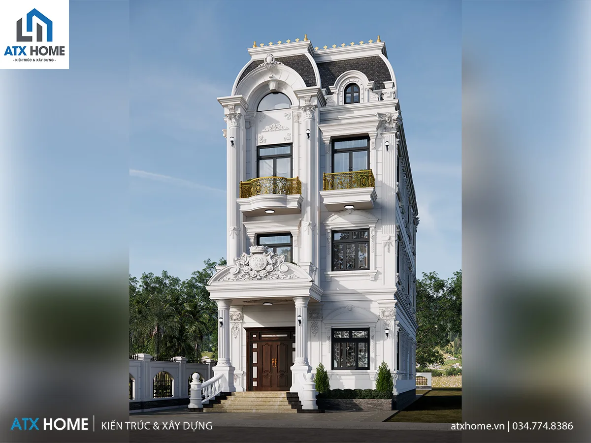 Mẫu nhà biệt thự mái Mansard 4 tầng siêu sang trọng