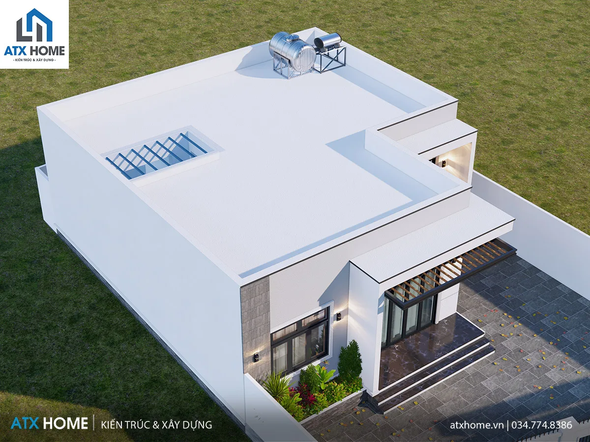 Mái bằng chống thấm 2 lớp, kết hợp sơn chống nóng giúp nhà mát mẻ quanh năm.
