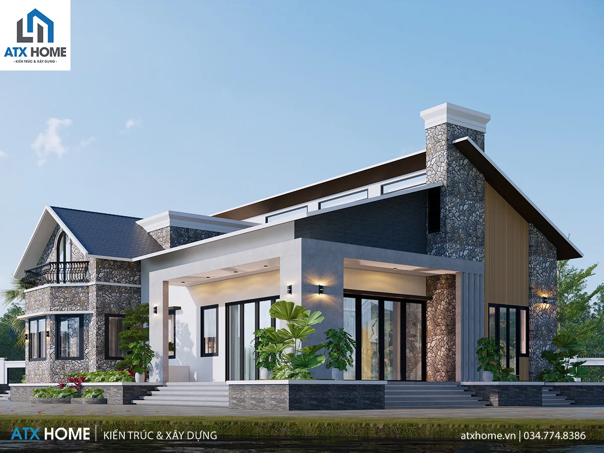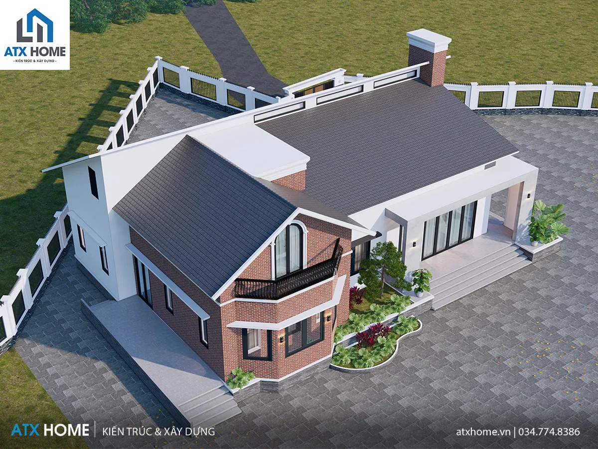 Chị Hà mong muốn một không gian rộng mở, thoáng khí, phù hợp sinh hoạt gia đình đa thế hệ. Từ nhu cầu đó, kiến trúc sư ATX HOME phát triển mô hình nhà mái lệch kết hợp hai khối kiến trúc tách biệt nhưng thống nhất: