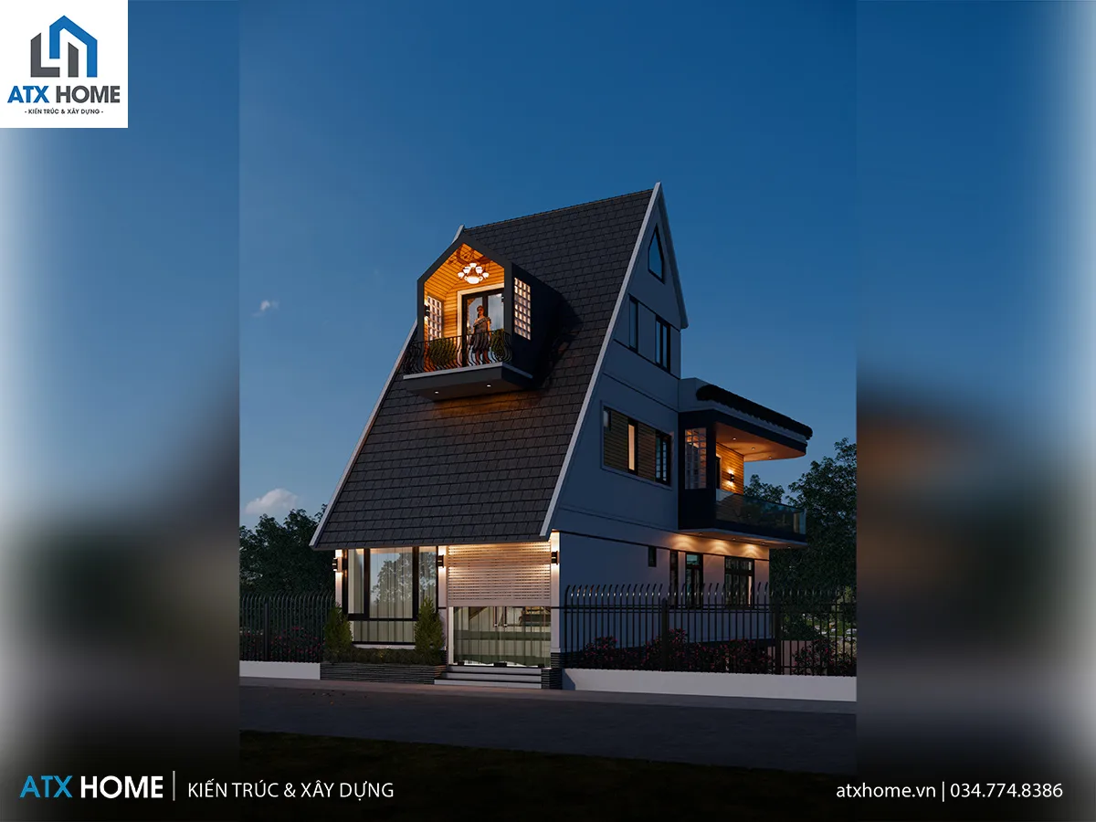 Mái lệch là lựa chọn lý tưởng cho nhà 3 tầng đô thị vì dáng mái bất đối xứng giúp công trình trẻ trung và cao ráo hơn, đồng thời tối ưu thoát nước, hạn chế ứ đọng rác lá trên mái. Hình khối nghiêng tạo khe lấy sáng – thông gió tự nhiên cho tầng trên, phù hợp với lô đất mặt tiền hẹp và khu dân cư san sát, giúp ngôi nhà vừa nổi bật về thẩm mỹ vừa đạt hiệu quả sử dụng thực tế.