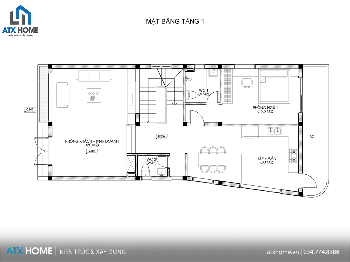 Tầng 1 – Sinh hoạt & kinh doanh linh hoạt