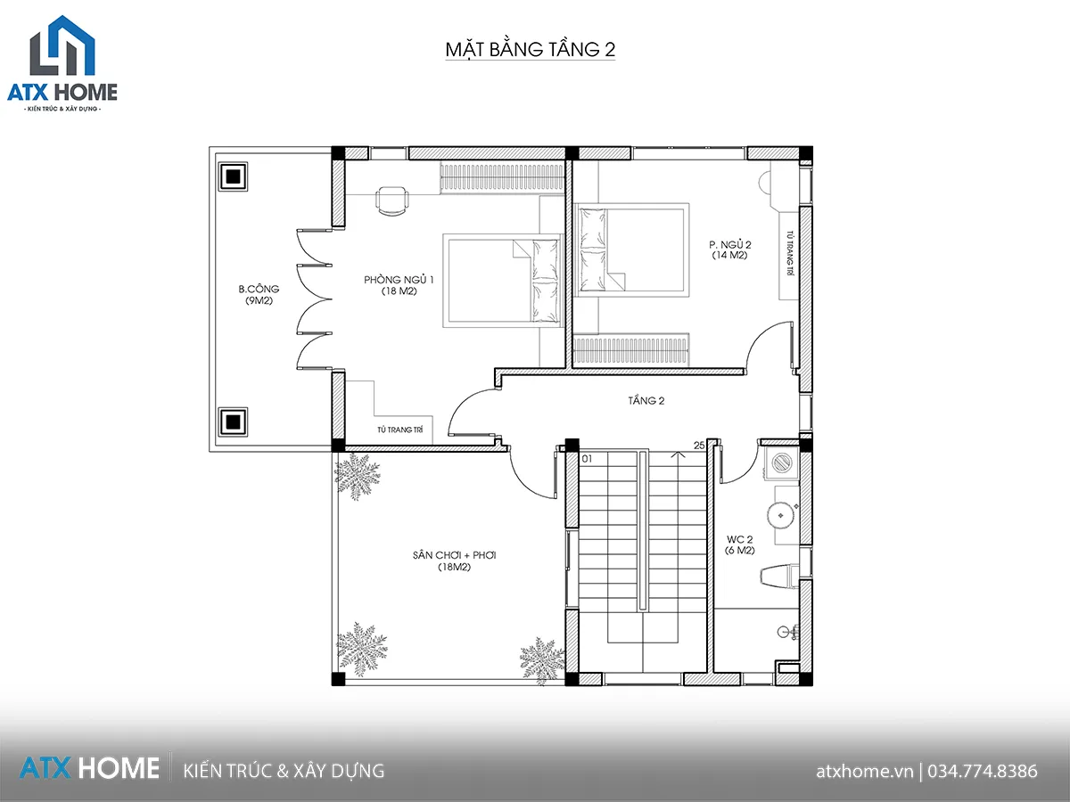 Thiết kế mặt bằng được ATX HOME triển khai với mục tiêu tối ưu hóa diện tích sử dụng, đảm bảo không gian sinh hoạt luôn thông thoáng, tiện nghi và riêng tư. Dù diện tích chỉ 130m², nhưng từng khu vực được tính toán kỹ lưỡng để đáp ứng đầy đủ nhu cầu sinh hoạt của gia đình 4 người vừa thuận tiện, vừa mang lại cảm giác ấm cúng, gần gũi.