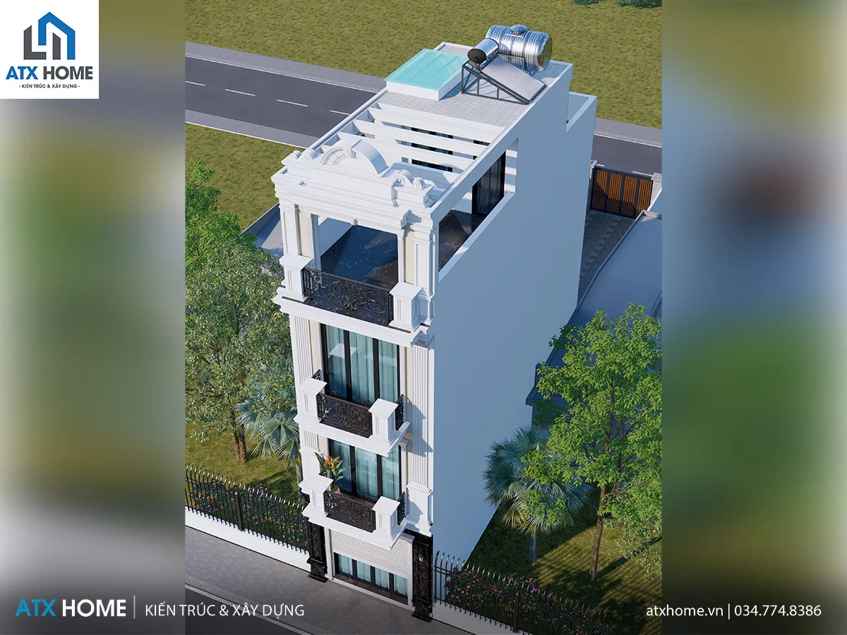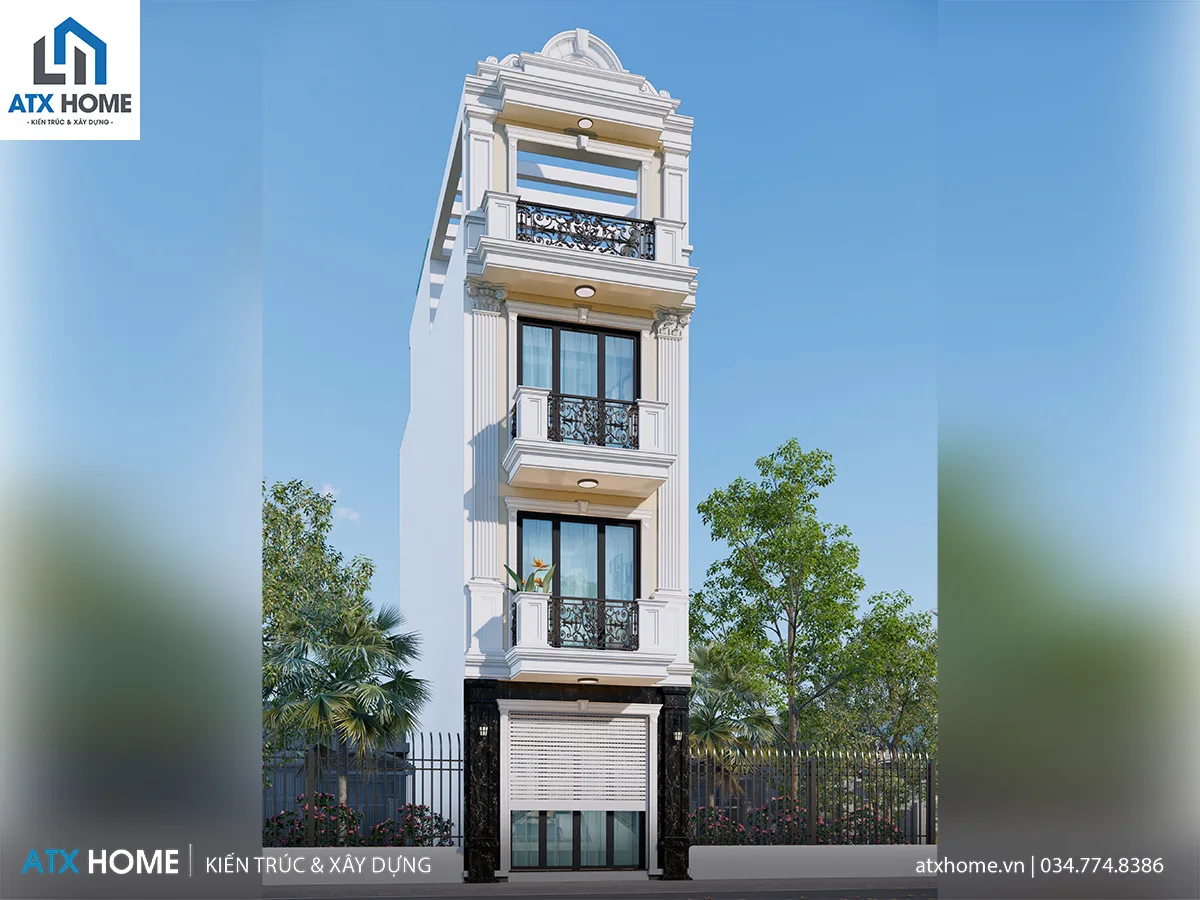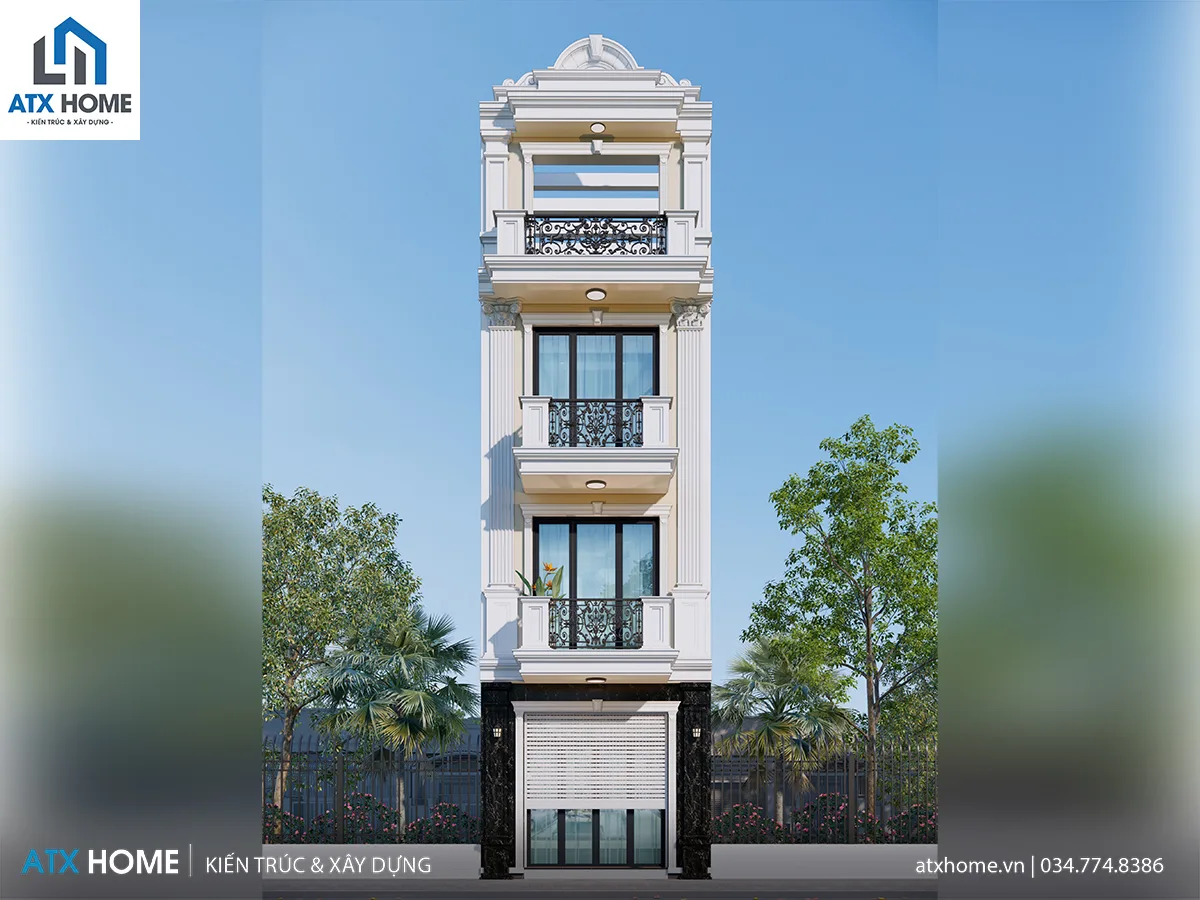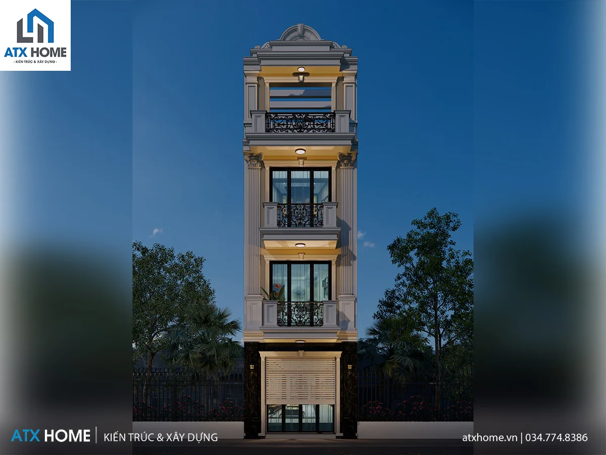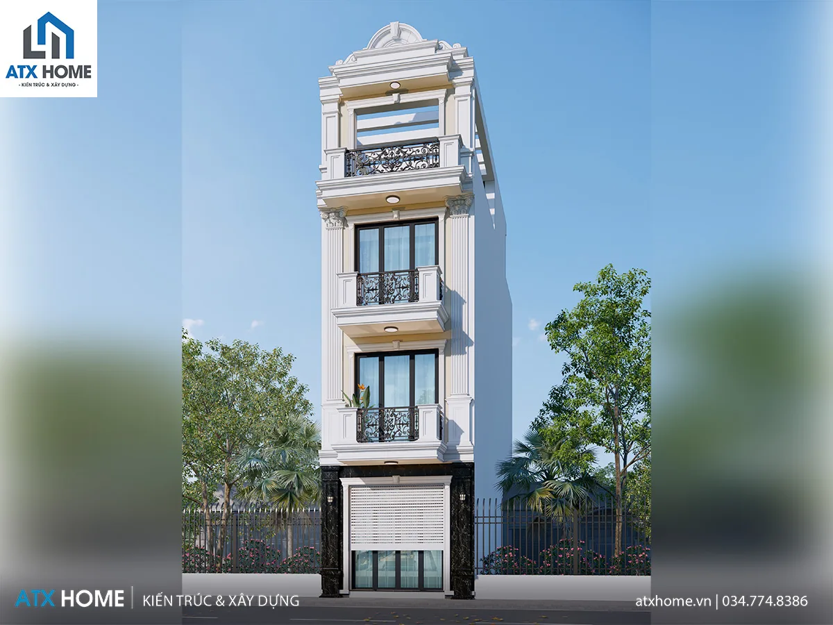 Mẫu nhà ống 4 tầng kiển trúc tân cổ điển, sang trọng