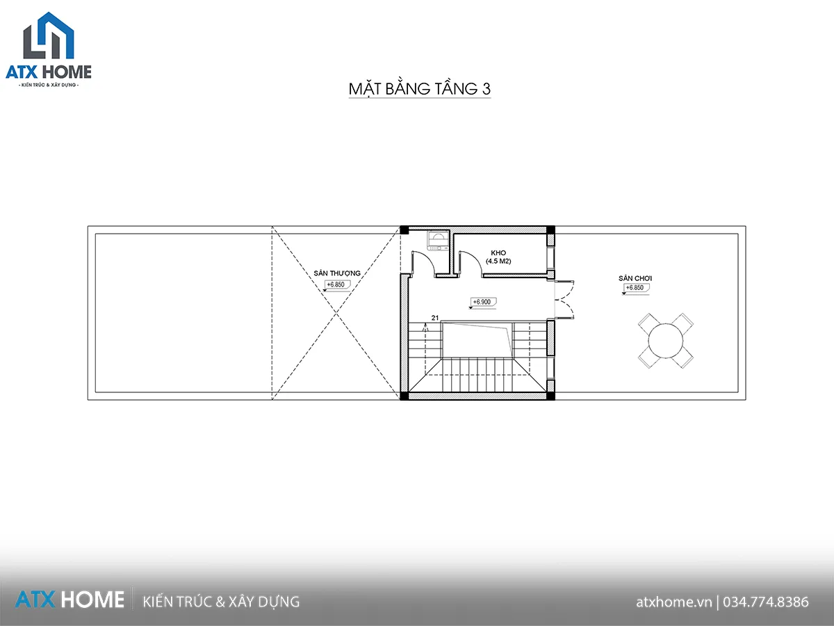 Tầng 3 – Sân thượng và kho tiện ích