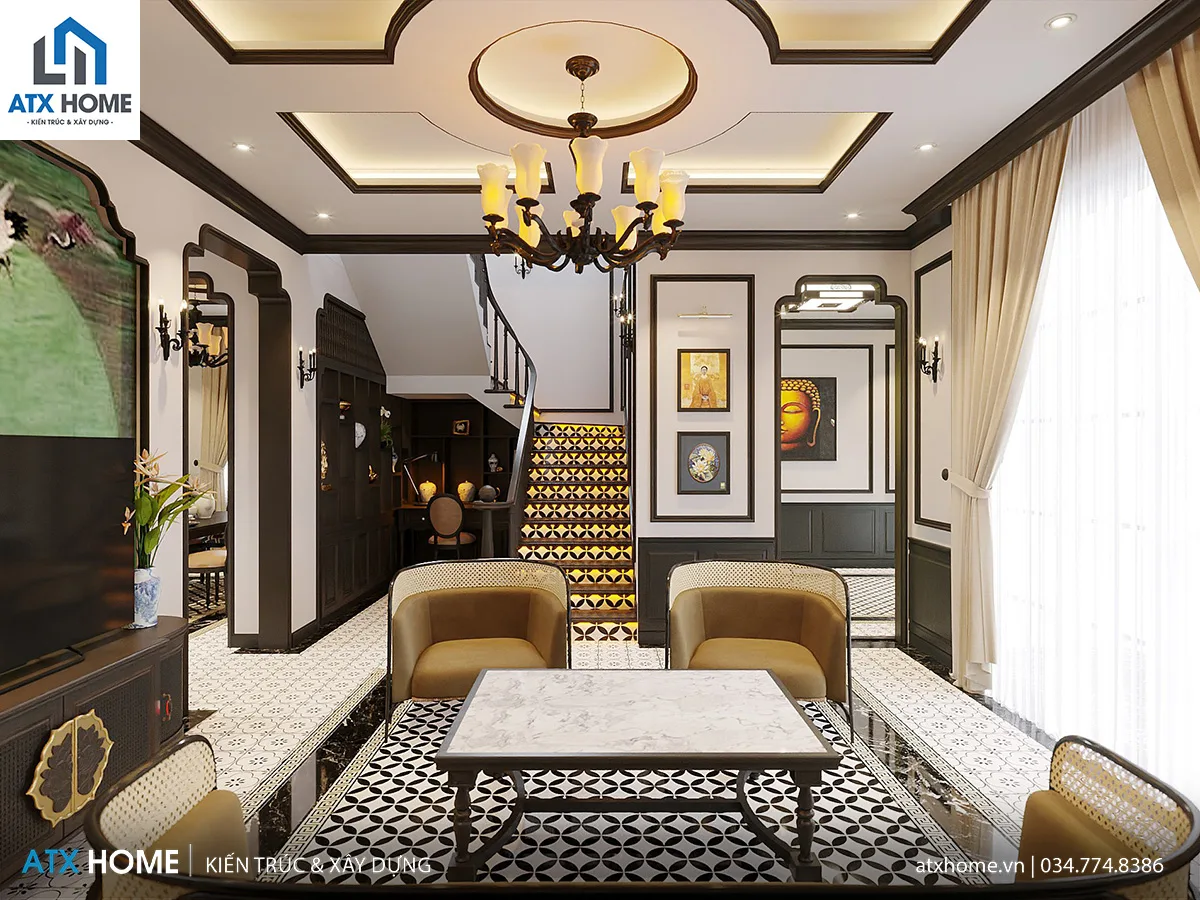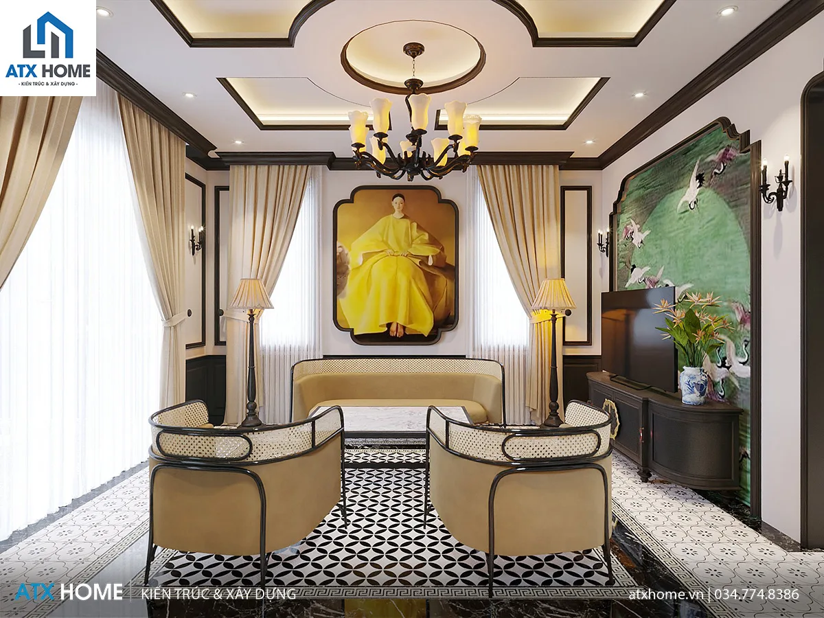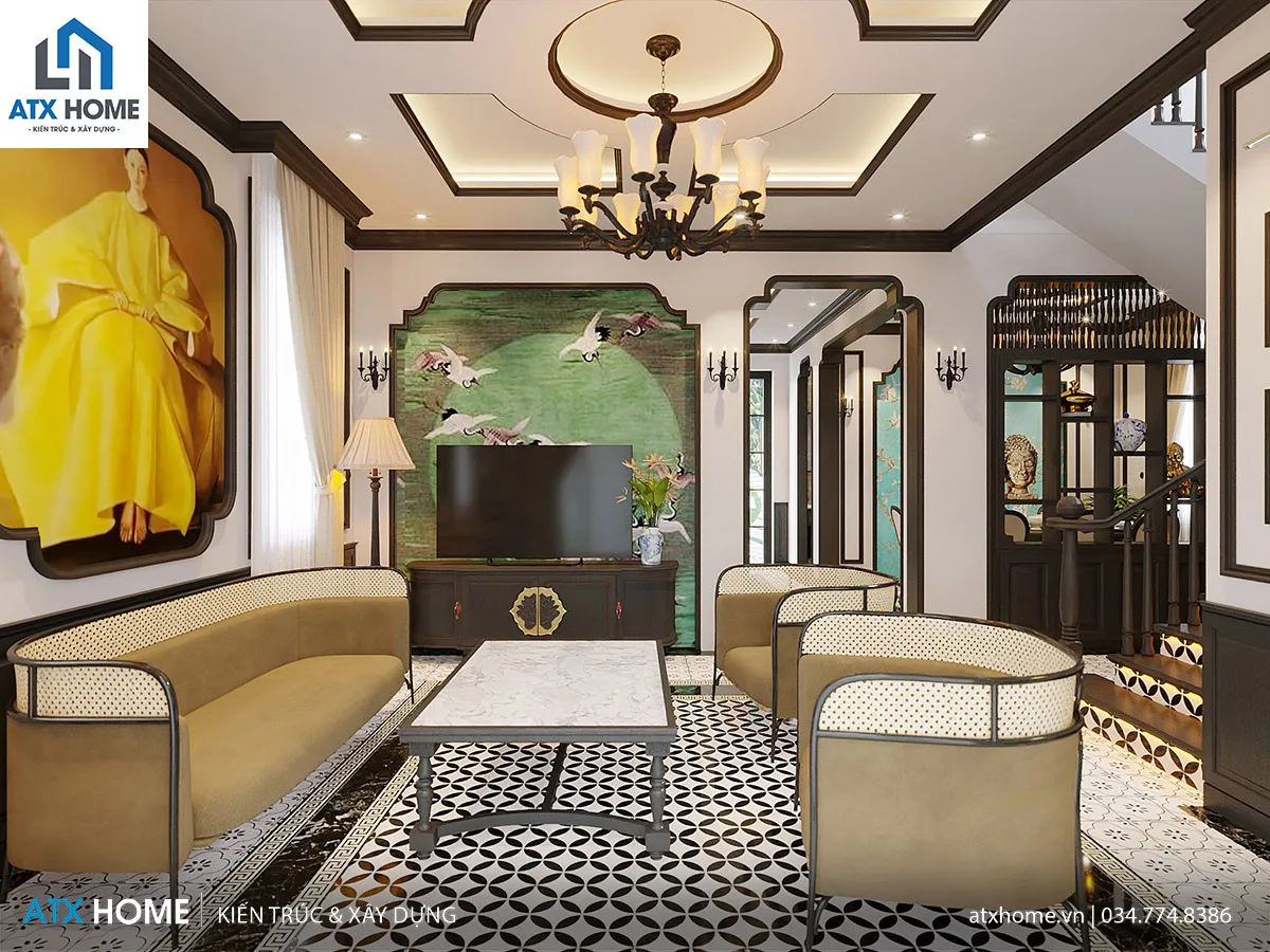 Mẫu nội thất phong cách Indochine này là sự hòa quyện tinh tế giữa vẻ đẹp truyền thống Á Đông và nét lãng mạn cổ điển của kiến trúc Pháp. Những đường cong mềm mại, gam màu trung tính ấm, họa tiết gạch bông đặc trưng và các mảng tường trang trí thủ công tạo nên một không gian vừa sang trọng, vừa gần gũi. ATX HOME khai thác triệt để bản sắc Đông Dương qua chất liệu tự nhiên và bố cục đối xứng, mang đến một không gian sống đậm chất nghệ thuật, nhẹ nhàng nhưng đầy dấu ấn cá nhân.
